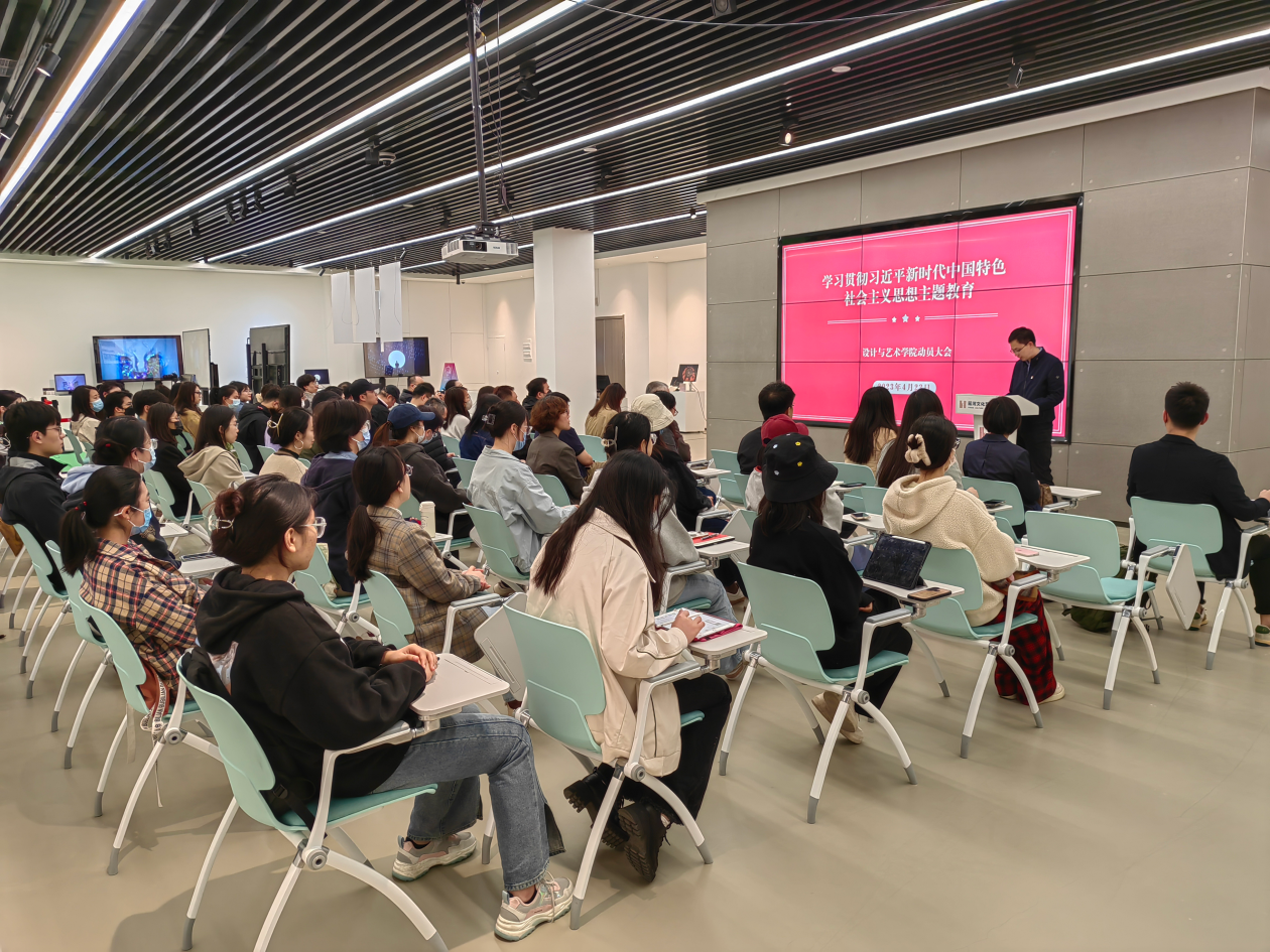 4月23日,设计与艺术学院召开学习贯彻习近平新时代中国特色社会主义思想主题教育动员会,深入学习贯彻习近平总书记在中央主题教育工作会议上的重要讲话精神,传达学校工作要求,并部署学院主题教育相关工作。学院党委书记肖雄主持会议并作动员讲话。学校第四巡回指导组副组长、校长助理魏名山出席会议并作指导讲话,指导组联络员黄金、李肖平,设计与艺术学院领导班子、全体教职工党员、学生党支部委员参加会议。